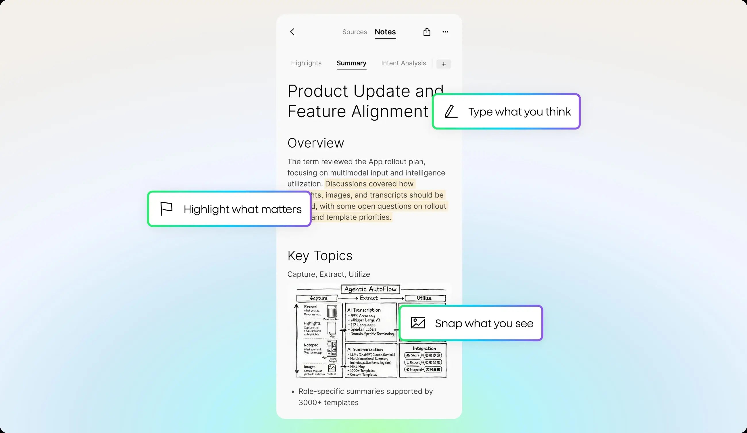 Capture crystal-clear audio with dual high-fidelity microphones and AI speech enhancement in Plaud App that keeps voices sharp and free from noise.