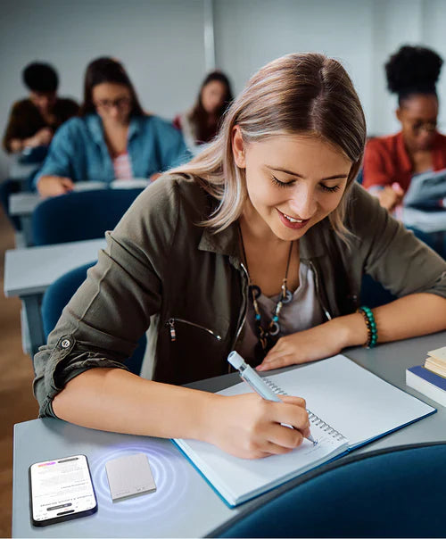 Stay focused in class while Plaud captures everything for you. Wearable, portable, and always ready. Plaud Note and Plaud NotePin record seamlessly, then sync for instant AI processing.
