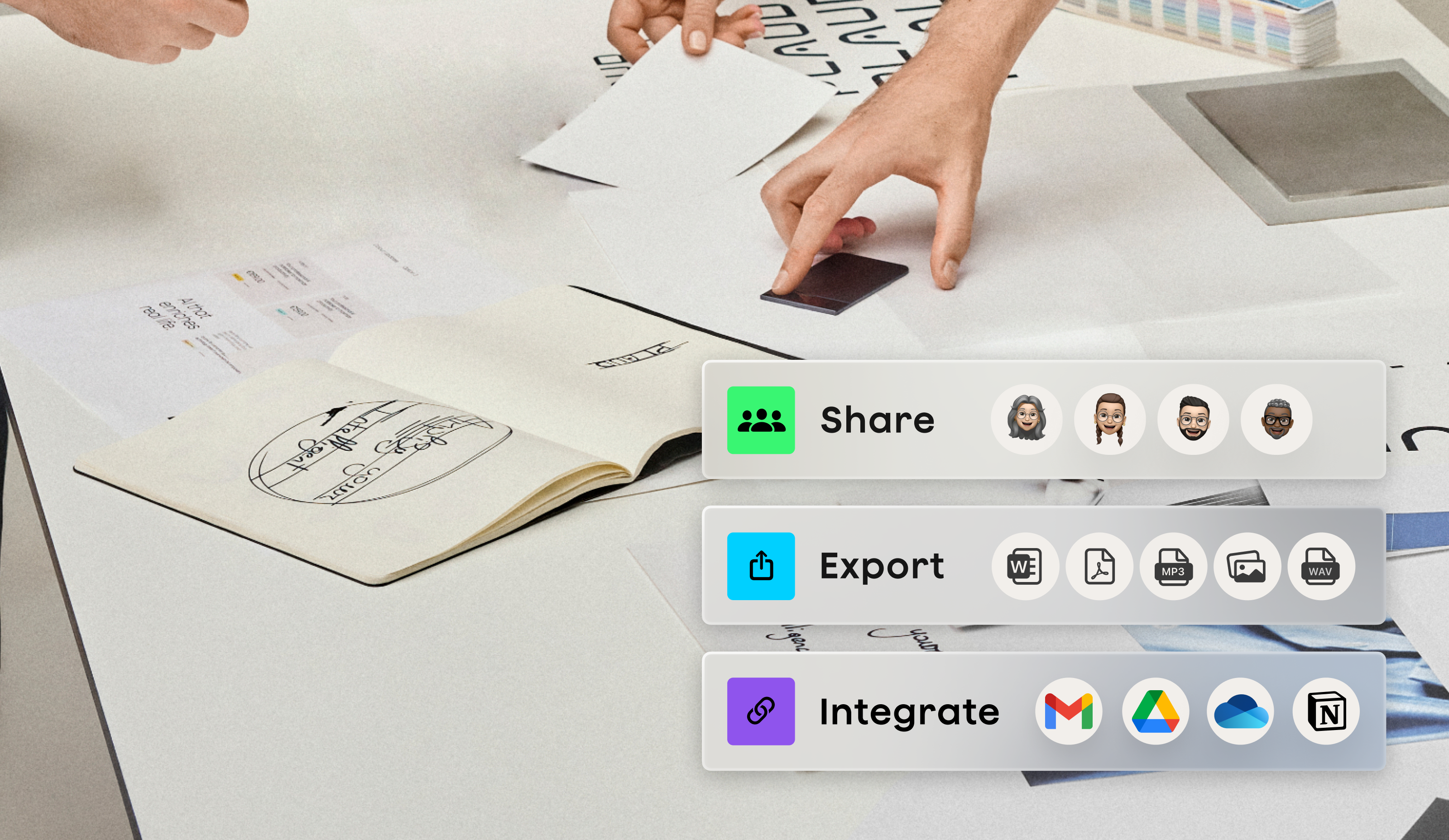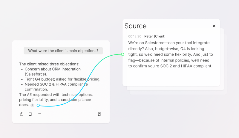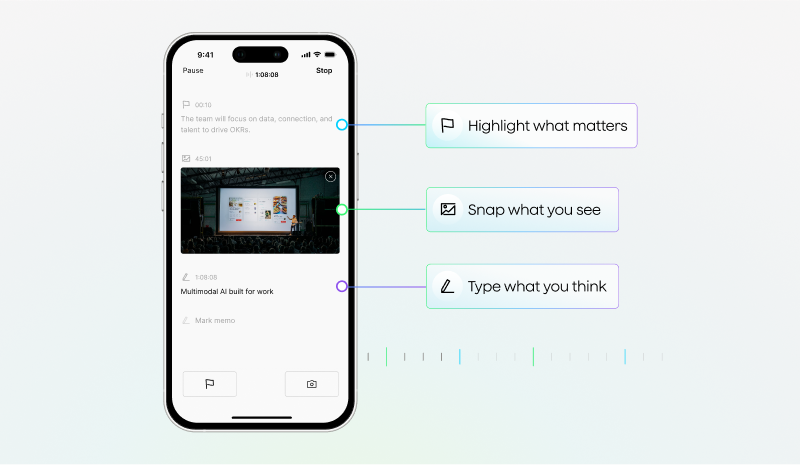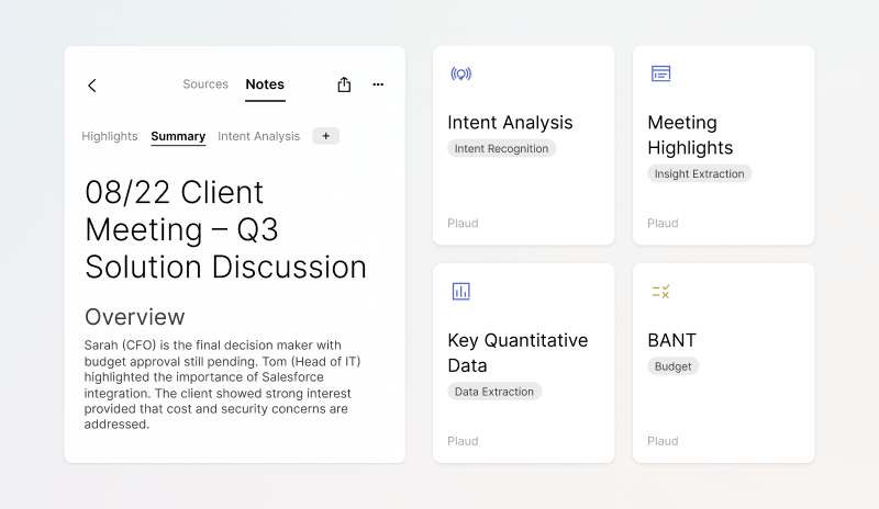 Stay focused in the room while conversations are captured, processed, and structured intelligently with context and nuance.