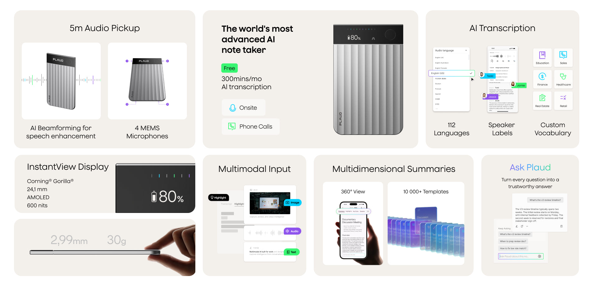 - Ask Plaud: Query notes, extract insights, and create content with natural language.