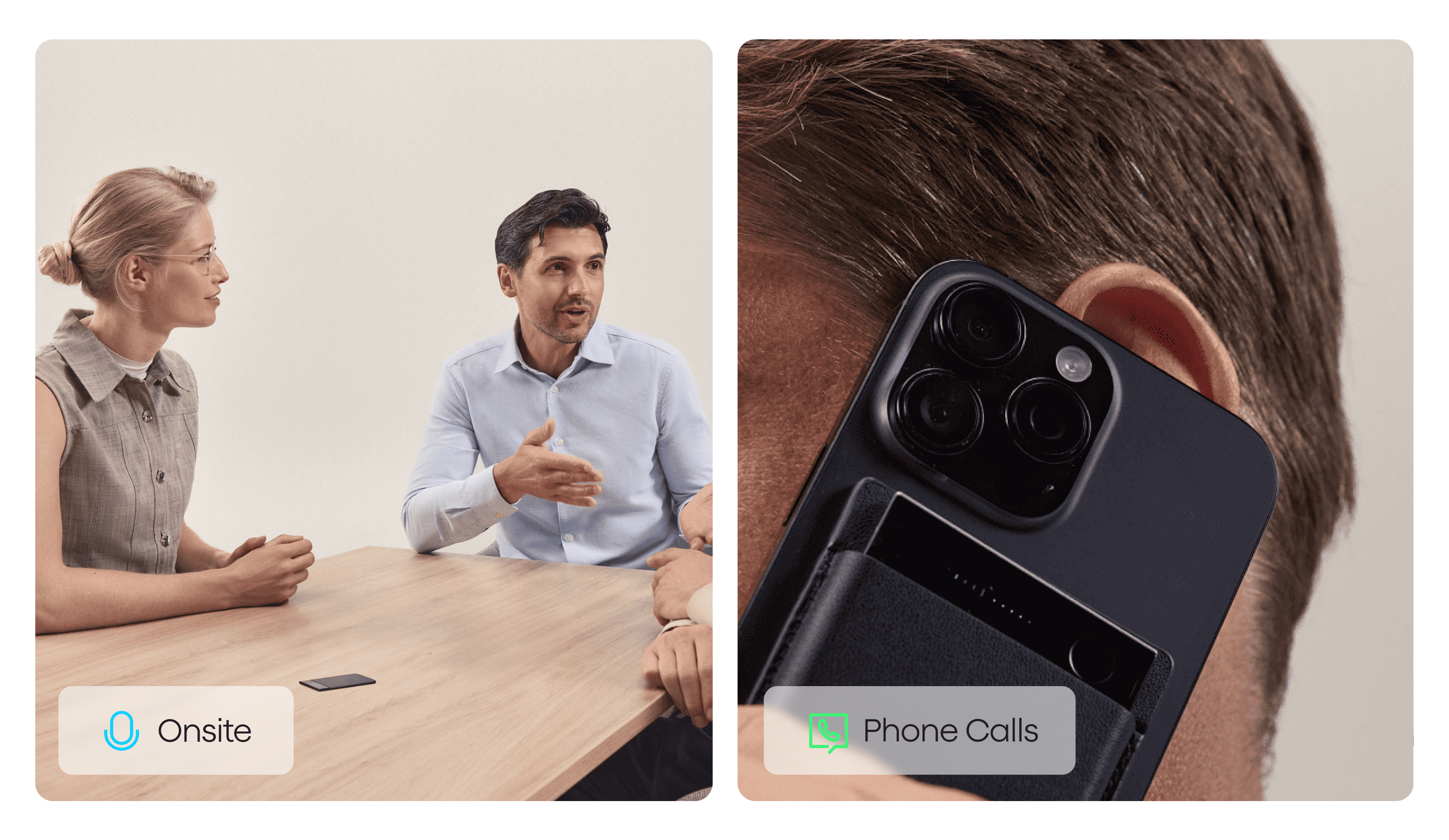 Smart dual-mode recording - Automatically switches between phone call and in-person modes.