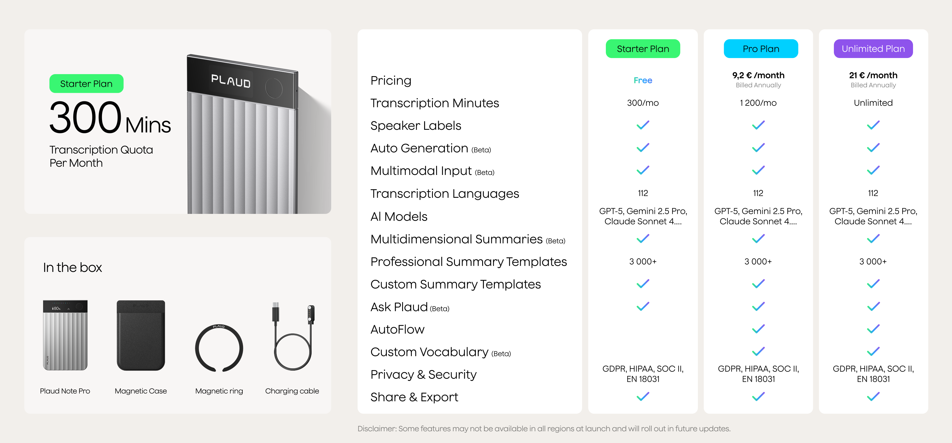 With AI beamforming, Plaud Note Pro captures crystal-clear voices from up to 5 meters, so every word is preserved in detail.