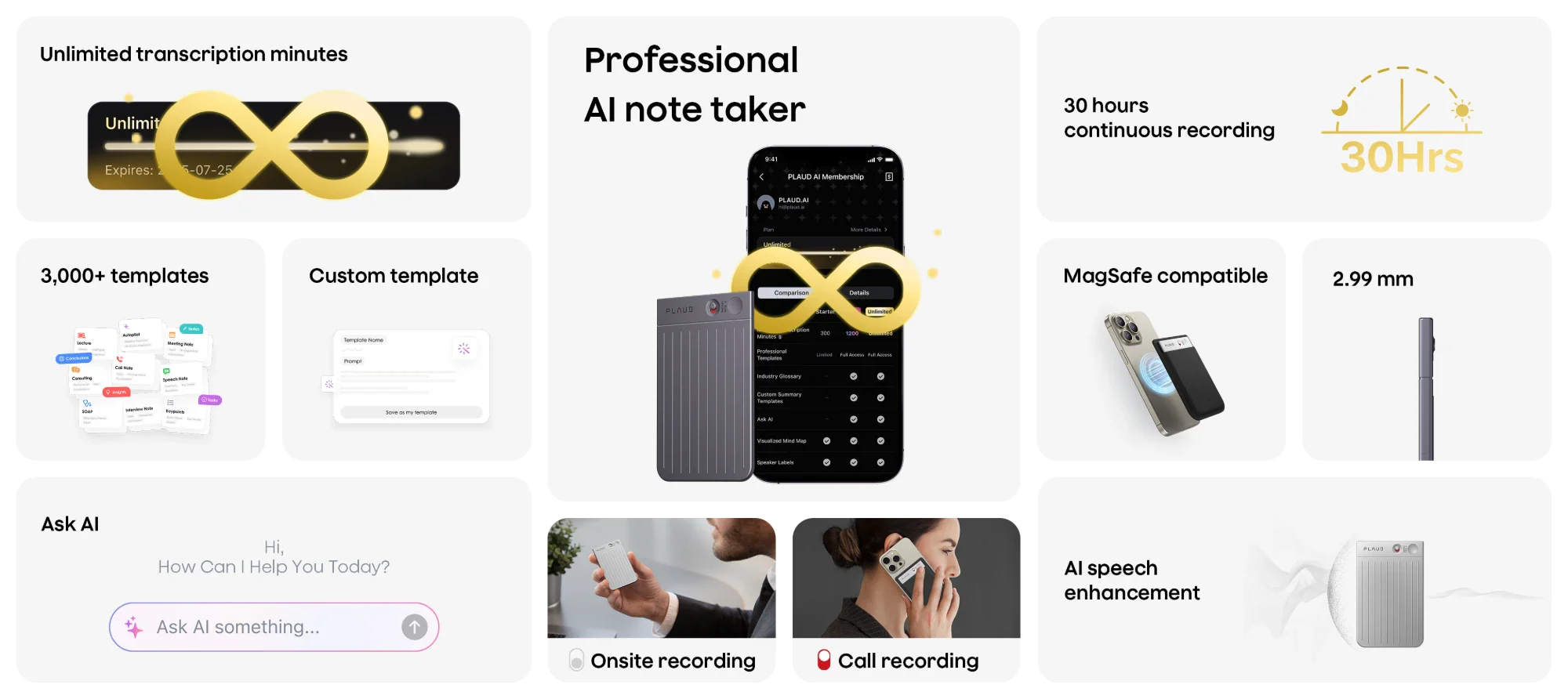 Plano Anual Ilimitado Plaud Note e AI Os pedidos são geralmente enviados em 1 a 2 dias úteis.